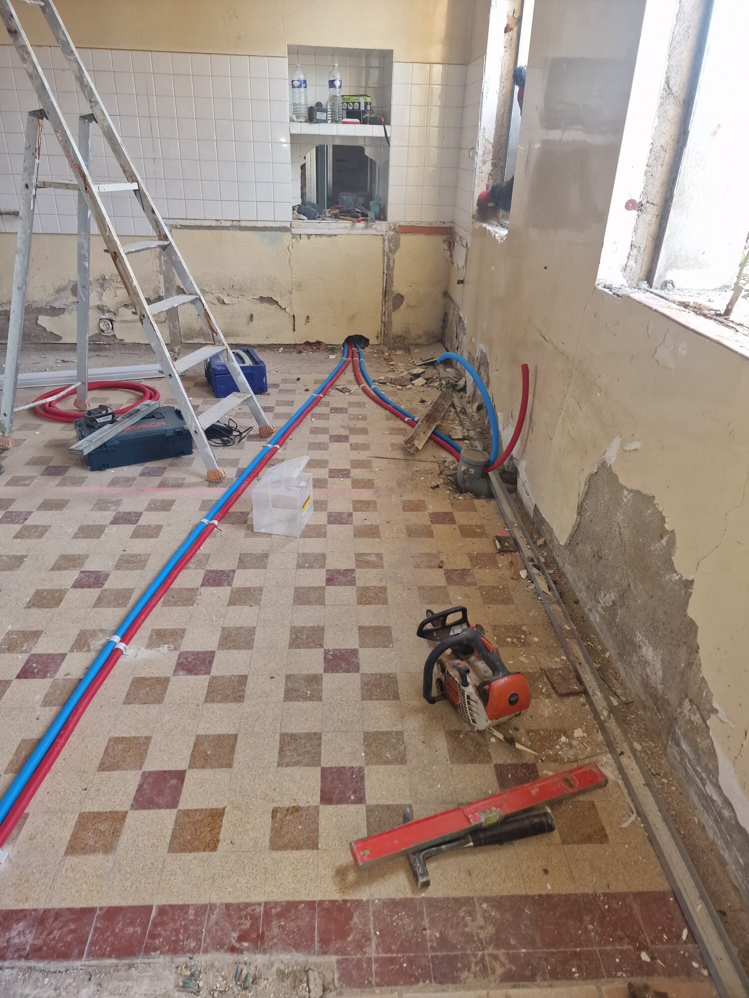 rénovation total plomberie chauffage dimensionnement des radiateur pour tourné en basse température avec pompe a chaleur fontaine en sologne